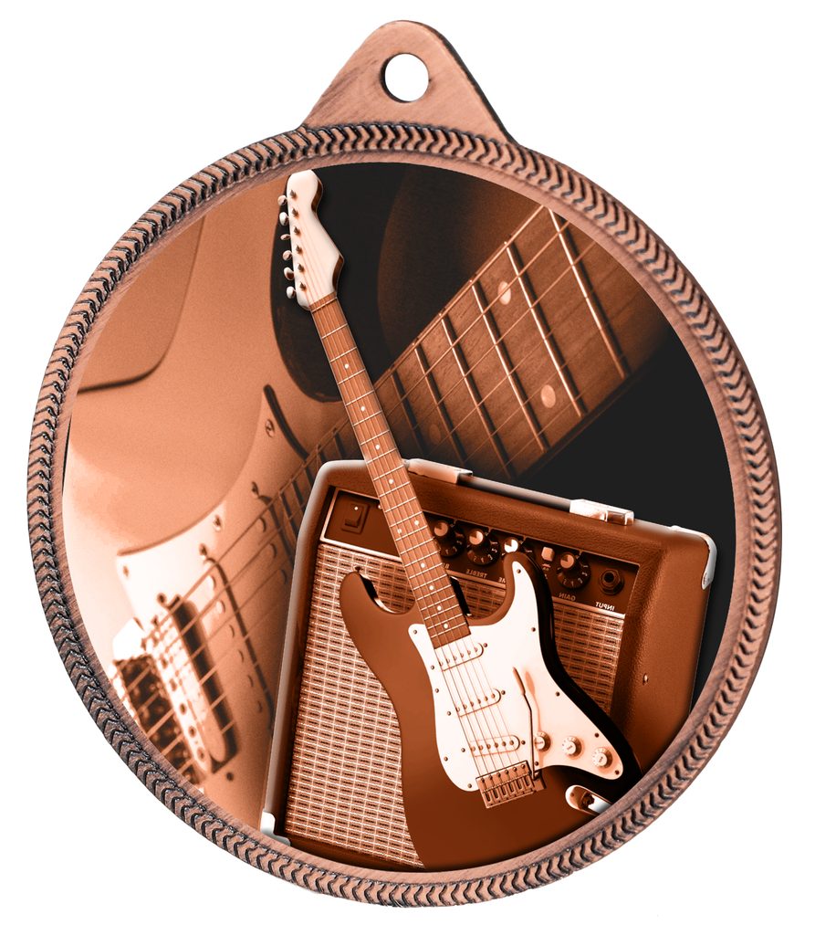 A truly superb new Electric Guitar 55mm medal made from iron. The medal has been printed using the latest 3D texture coating making the medal come alive with a vibrant raised colour print. Give your next presentation a lift with these contemporary medals which are sure to make eyes light up when received!