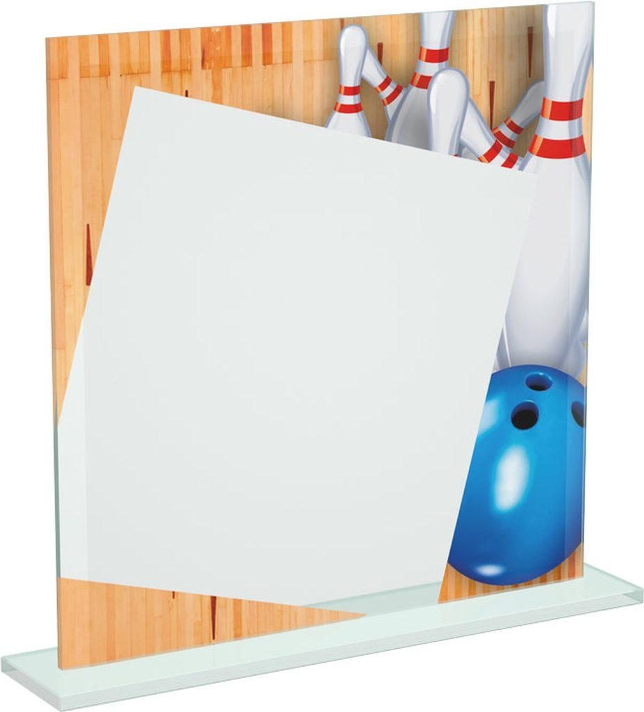 Strike the perfect presentation with the Eloise Tenpin Bowling Colour Printed Glass Award. Crafted from 6mm thick premium glass and offered in 150mm, 170mm, and 190mm, it features a vibrant full-colour UV bowling design with pins and ball, plus a clear glass panel for your custom logo and text. Ideal for league nights, tournaments, team trophies, and high-score awards. Personalisation included.