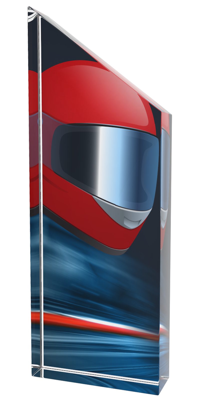 The Everest Motorsports Helmet Trophy is an impressive free standing award. This trophy features a high quality full colour print on the reverse side of 25mm ultra-thick acrylic.