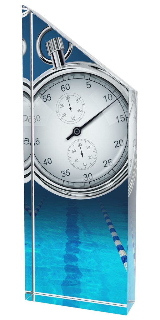 The Everest Swimming Stopwatch Trophy is an impressive free standing award. This trophy features a high quality full colour print on the reverse side of 25mm ultra-thick acrylic.