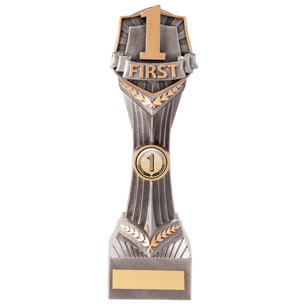 The Falcon 1st Place Trophy is a high definition design made from top quality plastic, with beautifully displayed detail. Glazed in a stunning colour mix of antique silver and gold.