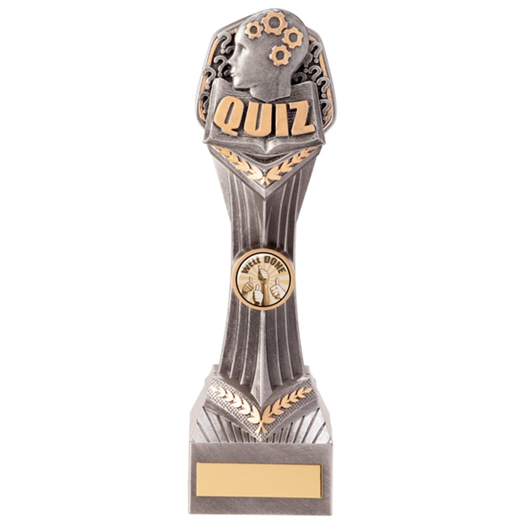 The Falcon Quiz Trophy is a high definition design made from top quality plastic, with beautifully displayed detail. Glazed in a stunning colour mix of antique silver and gold.