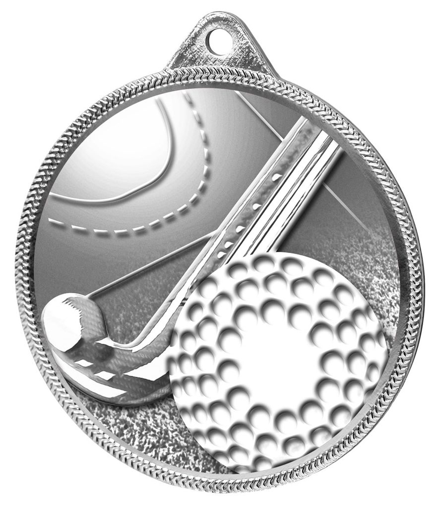 The Field Hockey 3D Texture Print Antique Colour 55Mm Medal - Silver showcases revolutionary design with cutting-edge printing technology
