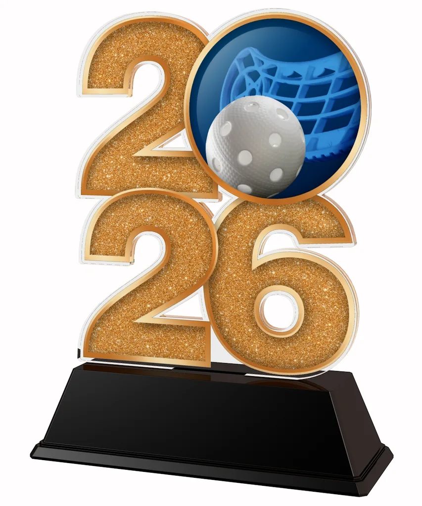 Celebrate teamwork, speed and skill with the Floorball Year Trophy, a bold and modern acrylic award designed especially for floorball clubs, schools, leagues and tournaments. Featuring a striking year design and full-colour floorball-themed imagery, this trophy makes a standout centrepiece for any presentation or awards ceremony.