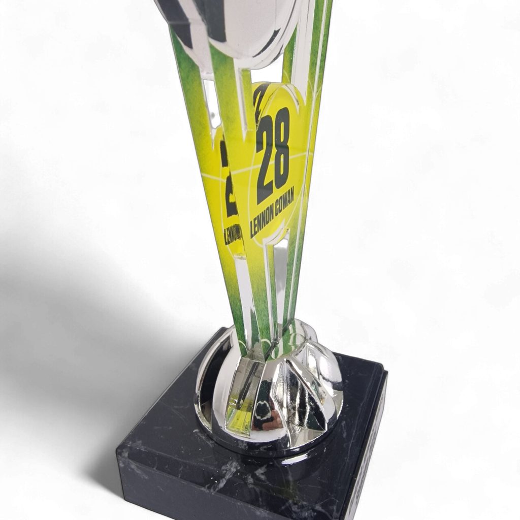 Custom name & number football trophy – personalise with the player’s name and squad number for a professional finish