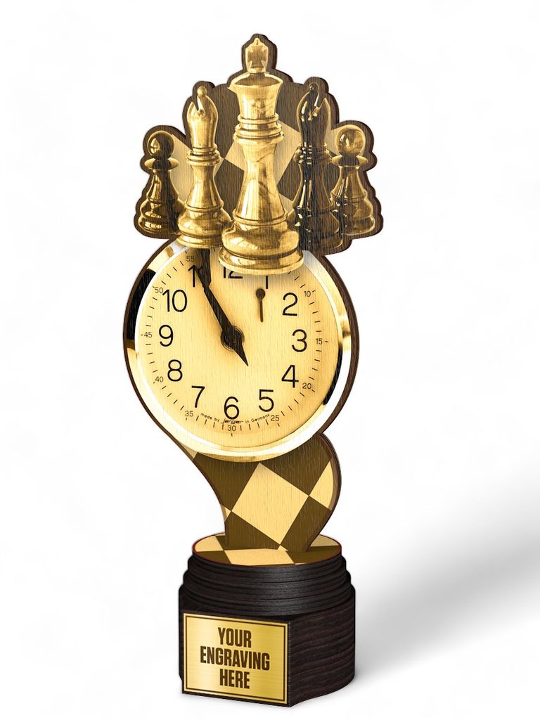 The Frontier Classic Real Wood Chess Trophy blends sustainability with bold design, making it an eco-friendly yet prestigious award.