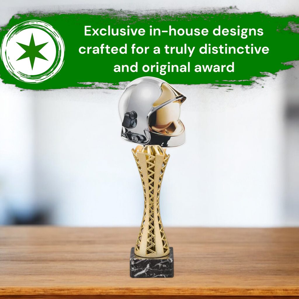 The Genoa Firefighter Helmet Trophy combines sleek modern materials with classic elements, creating a standout award for any occasion.