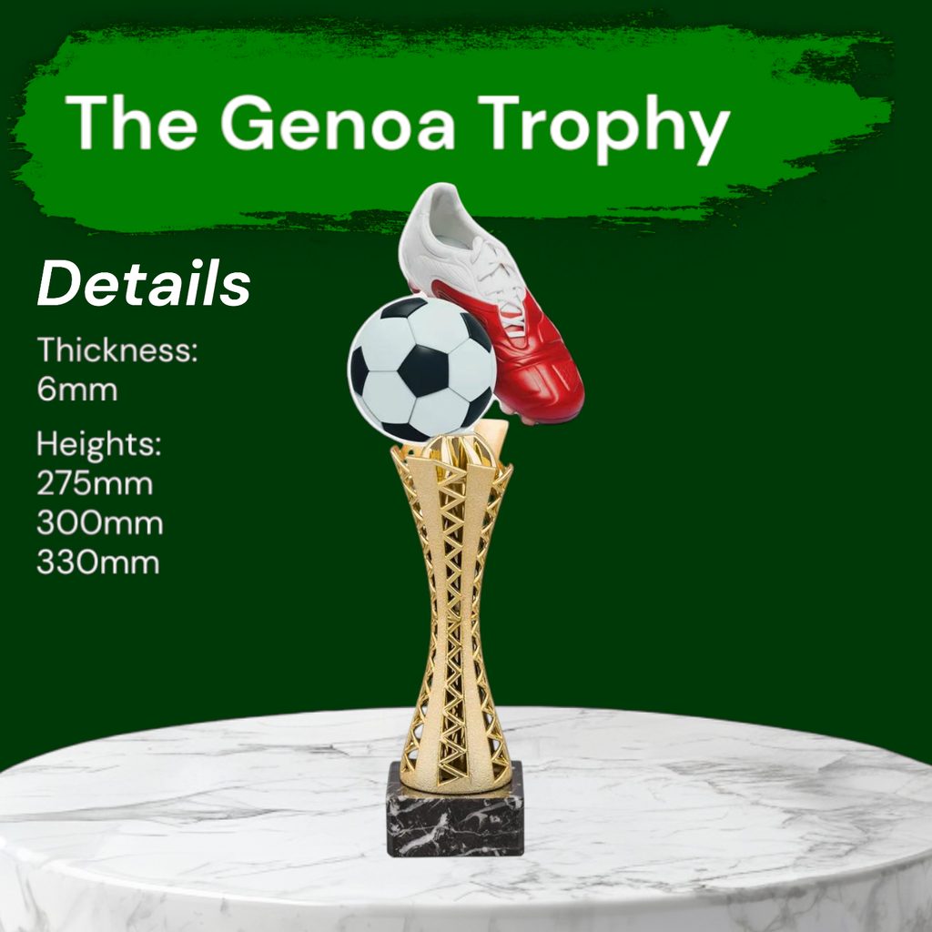 The Genoa Football Ball and Boot Trophy combines sleek modern materials with classic elements, creating a standout award for any occasion.