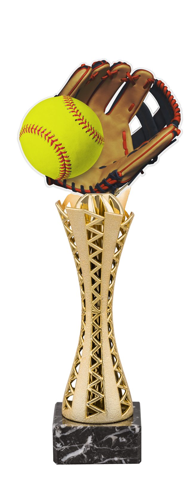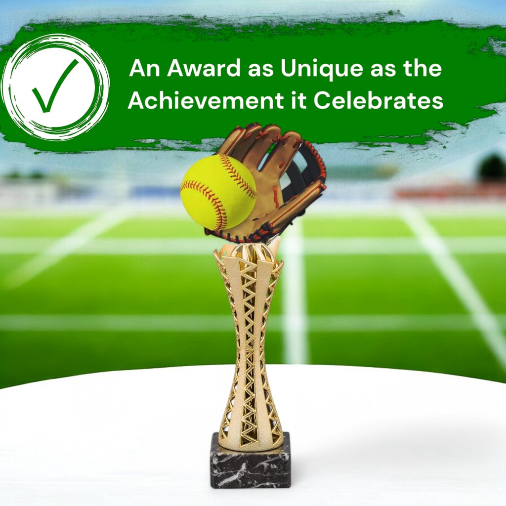 The Genoa Softball Glove and Ball Trophy combines sleek modern materials with classic elements, creating a standout award for any occasion.