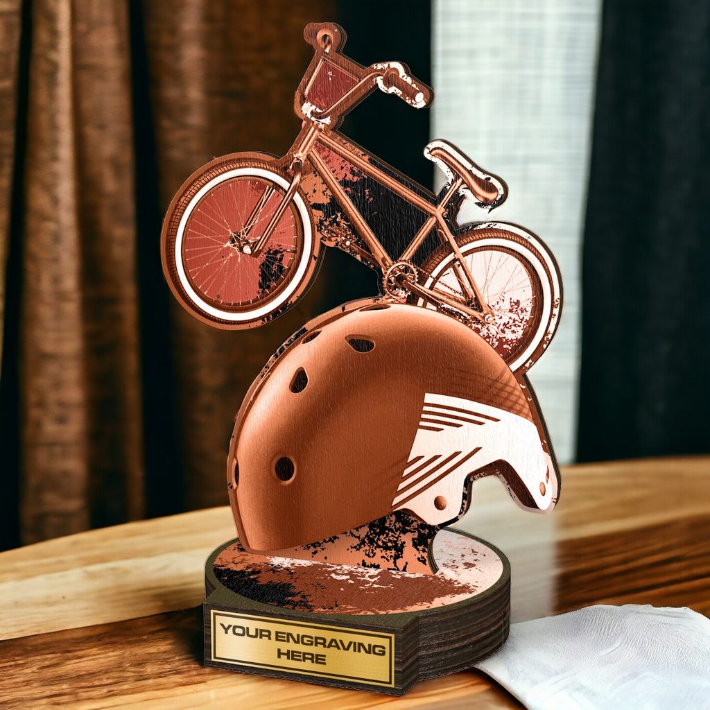 Available in antique classic gold, silver, or bronze print colours, this trophy exudes both grandeur and exclusivity. Its most charming feature is the unique printed top side base. With five sizes to choose from, there is an option to suit every budget. Consider personalising your trophy with a complimentary engraved plate.
