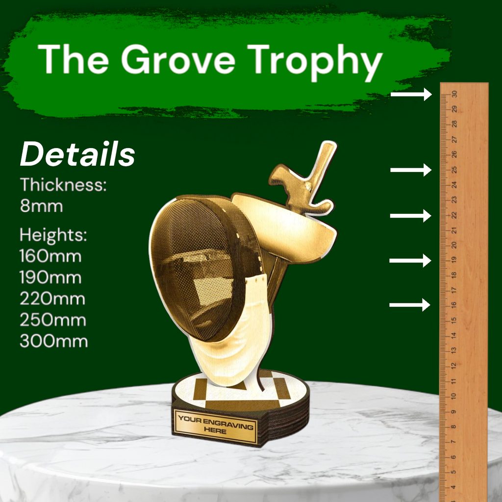 The Grove Classic Real Wood Trophy is a magnificent, eco-friendly award crafted from 8mm thick natural birch plywood and elegantly mounted on a sturdy wooden circular base. This sustainable product is part of a collection meticulously designed and manufactured in our very own factory. Not only ideal for the environmentally conscious, this trophy is sure to be the focal point of any presentation.