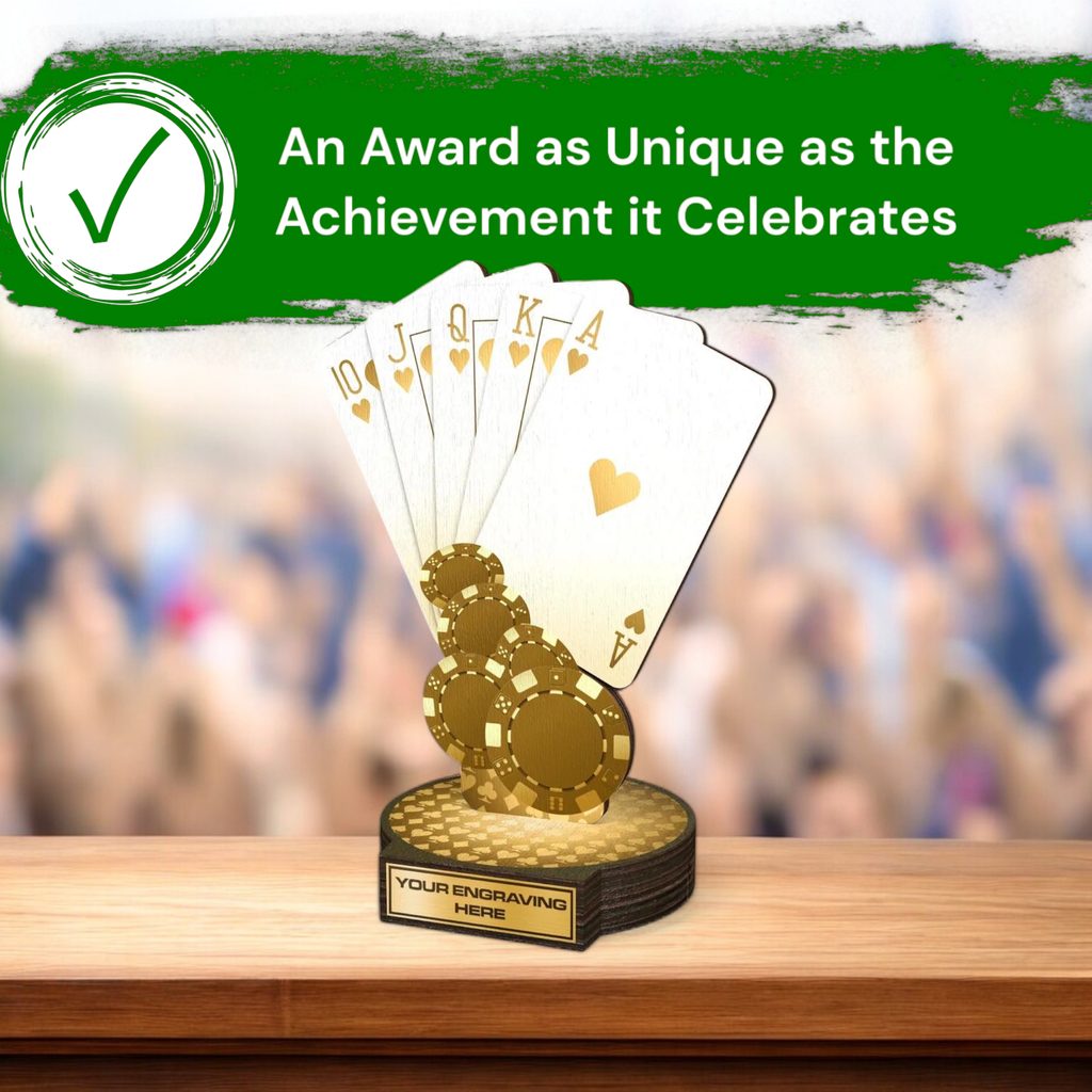 Available in antique classic gold, silver, or bronze print colours, this trophy exudes both grandeur and exclusivity. Its most charming feature is the unique printed top side base. With five sizes to choose from, there is an option to suit every budget. Consider personalising your trophy with a complimentary engraved plate.