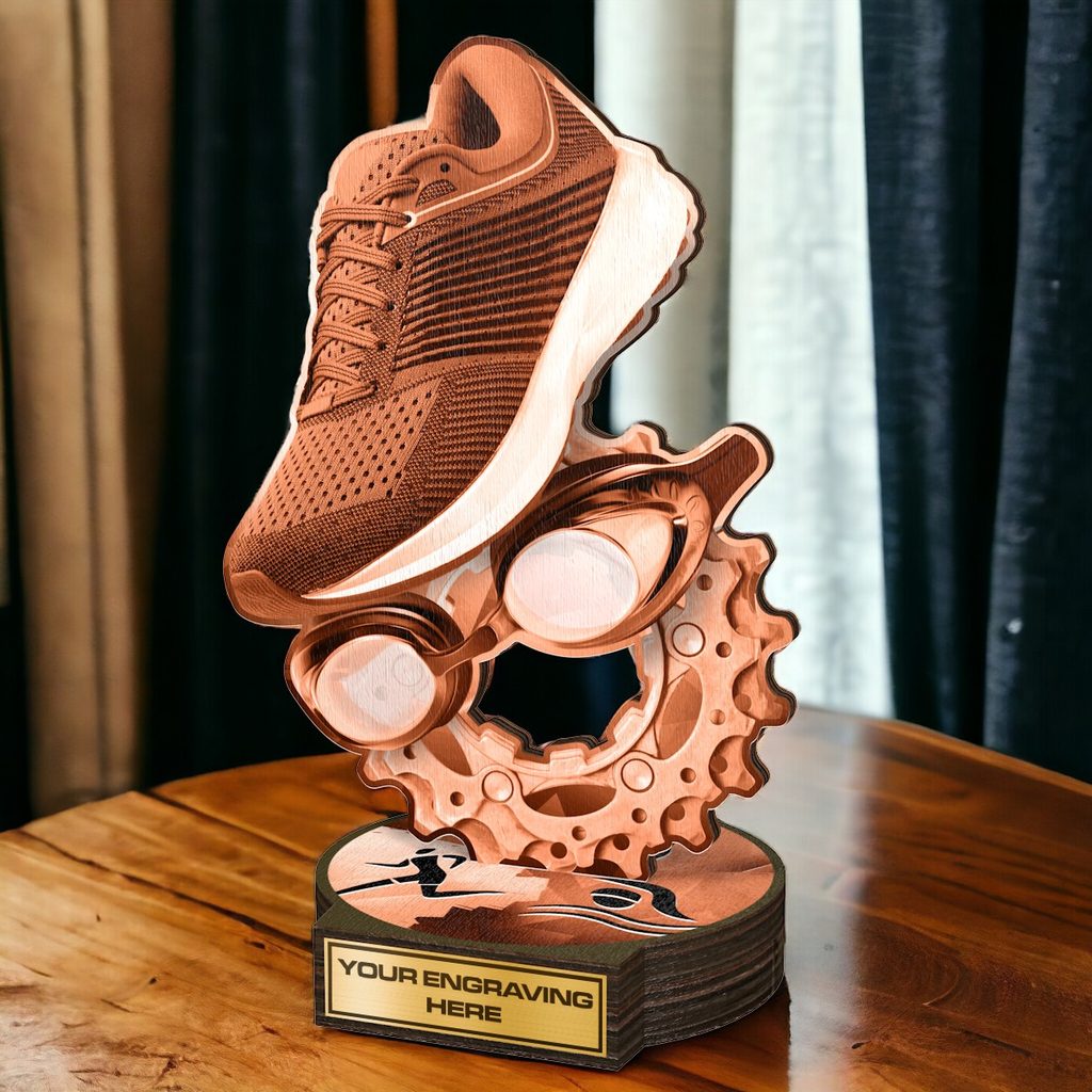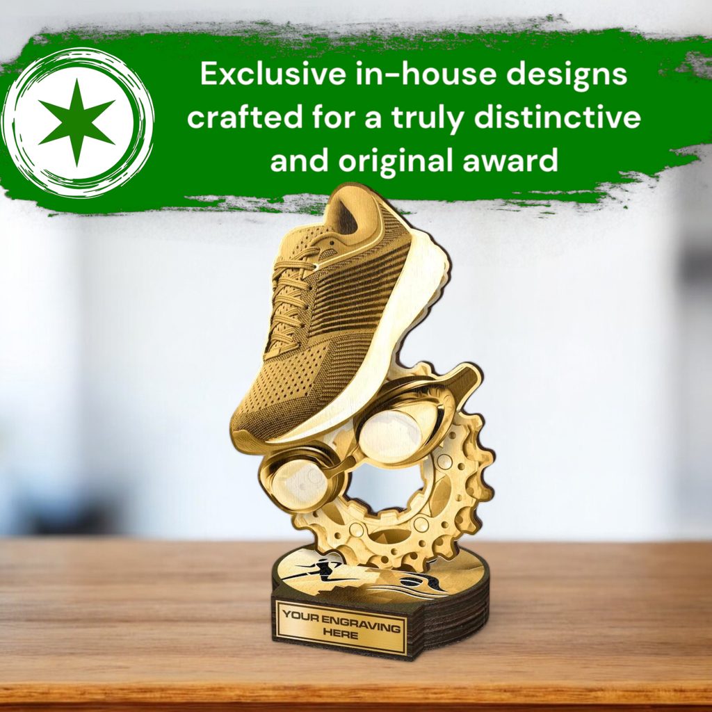 Available in antique classic gold, silver, or bronze print colours, this trophy exudes both grandeur and exclusivity. Its most charming feature is the unique printed top side base. With five sizes to choose from, there is an option to suit every budget. Consider personalising your trophy with a complimentary engraved plate.