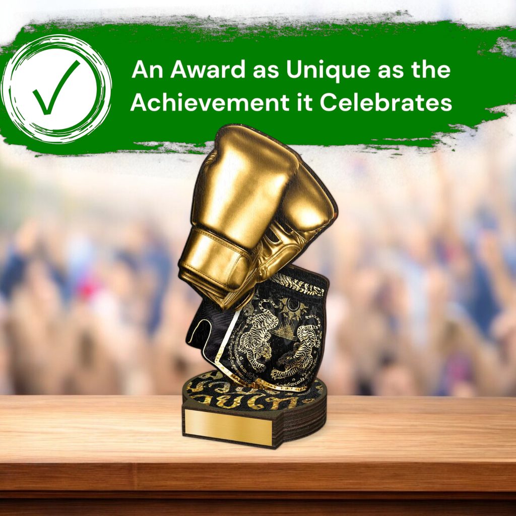 The Grove Kick Boxing Real Wood Trophy is a stunning eco friendly award made from 8mm thick natural birch plywood, mounted on a thick wooden circular base. A sustainable product that is part of a collection designed and manufactured in our own factory. Not only for the environmentally conscious, this trophy will be the centrepiece in any presentation.