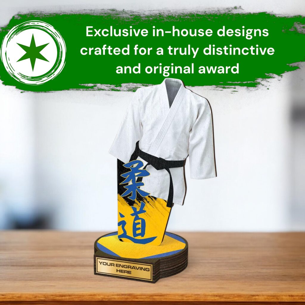 The Grove Kimono Real Wood Trophy is a stunning eco friendly award made from 8mm thick natural birch plywood, mounted on a thick wooden circular base. A sustainable product that is part of a collection designed and manufactured in our own factory. Not only for the environmentally conscious, this trophy will be the centrepiece in any presentation.