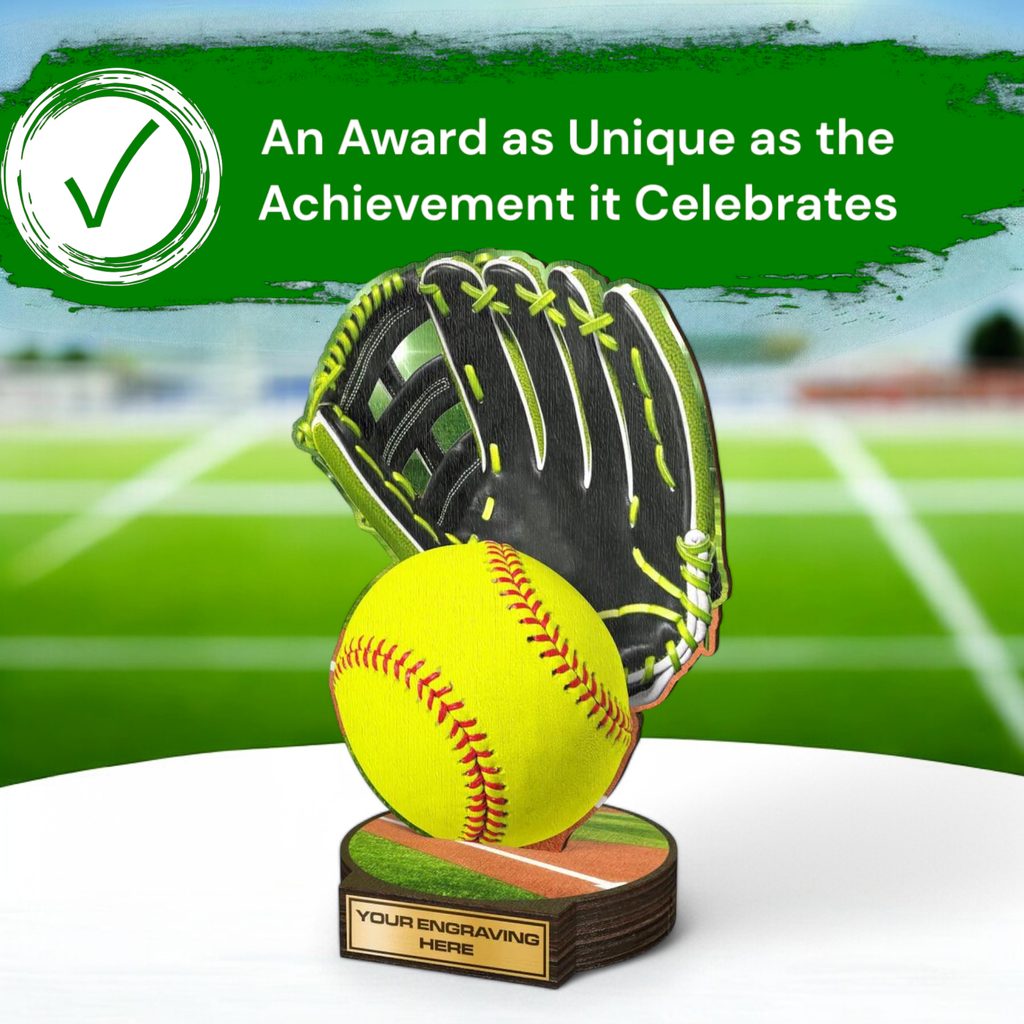 The Grove Softball Real Wood Trophy is a stunning eco friendly award made from 8mm thick natural birch plywood, mounted on a thick wooden circular base. A sustainable product that is part of a collection designed and manufactured in our own factory. Not only for the environmentally conscious, this trophy will be the centrepiece in any presentation.