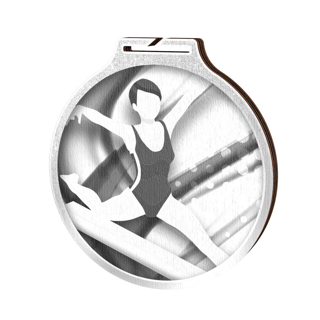 The Habitat Classic Female Gymnastics Silver Eco Friendly Wooden Medal provides sustainable elegance for every occasion