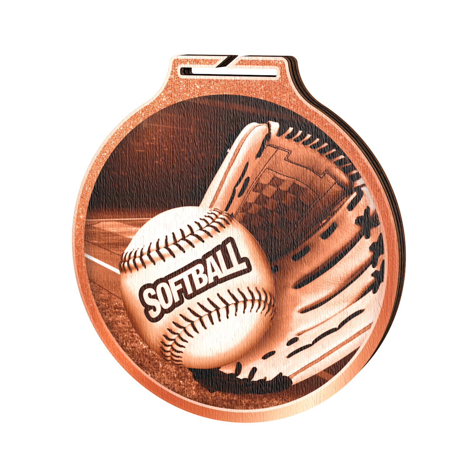 The Habitat Classic Softball Bronze Eco Friendly Wooden Medal provides sustainable elegance for every occasion