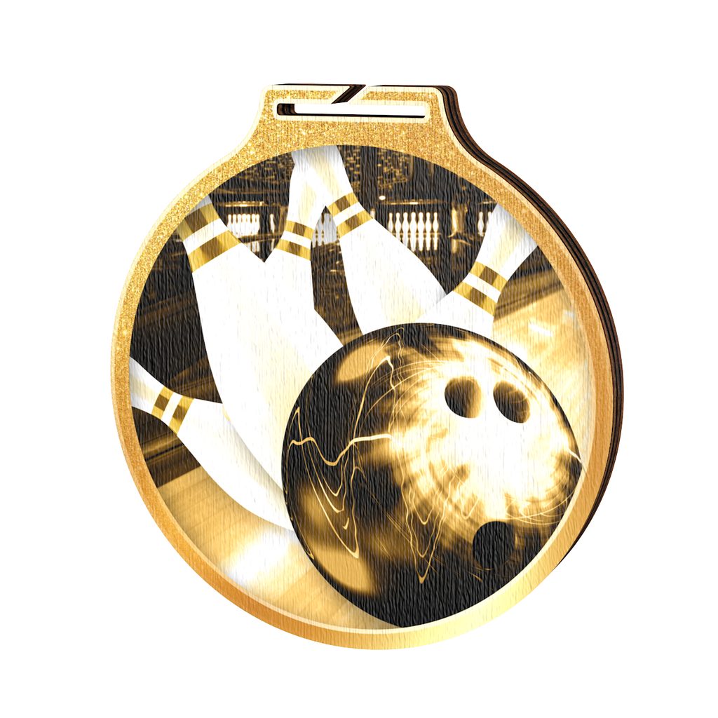 The Habitat Classic Tenpin Bowling Gold Eco Friendly Wooden Medal provides sustainable elegance for every occasion