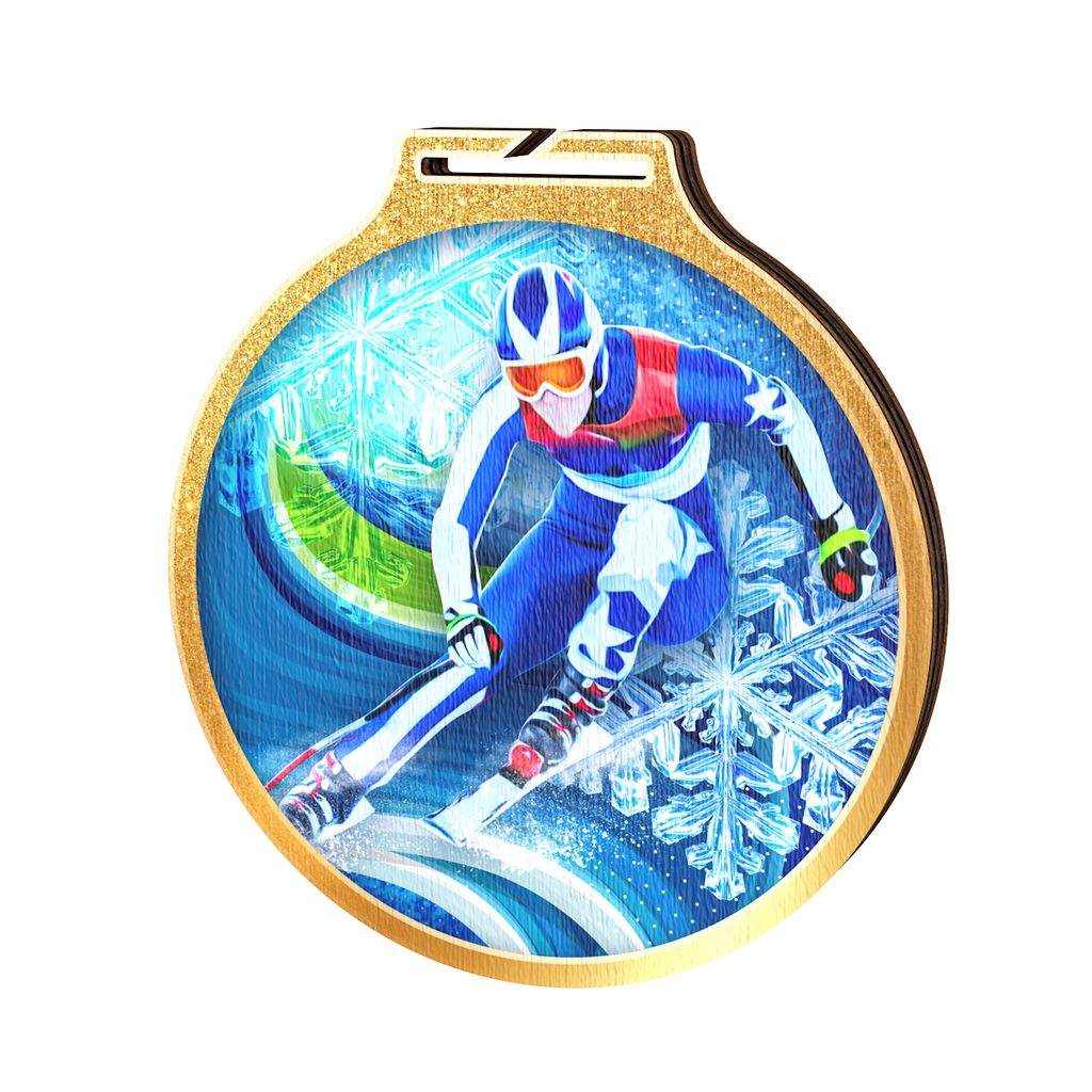 Eco Friendly Wooden Medals Skiing Medals Downhill Ski Medals