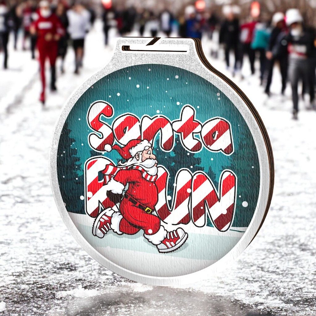 Introducing the Habitat Santa Run Eco-Friendly Wooden Medal, crafted from 8mm thick natural birch plywood. This sustainable award is part of a collection meticulously designed and manufactured in our very own factory. Perfect for those who prioritise environmental consciousness, this medal is sure to be a hit in any presentation.