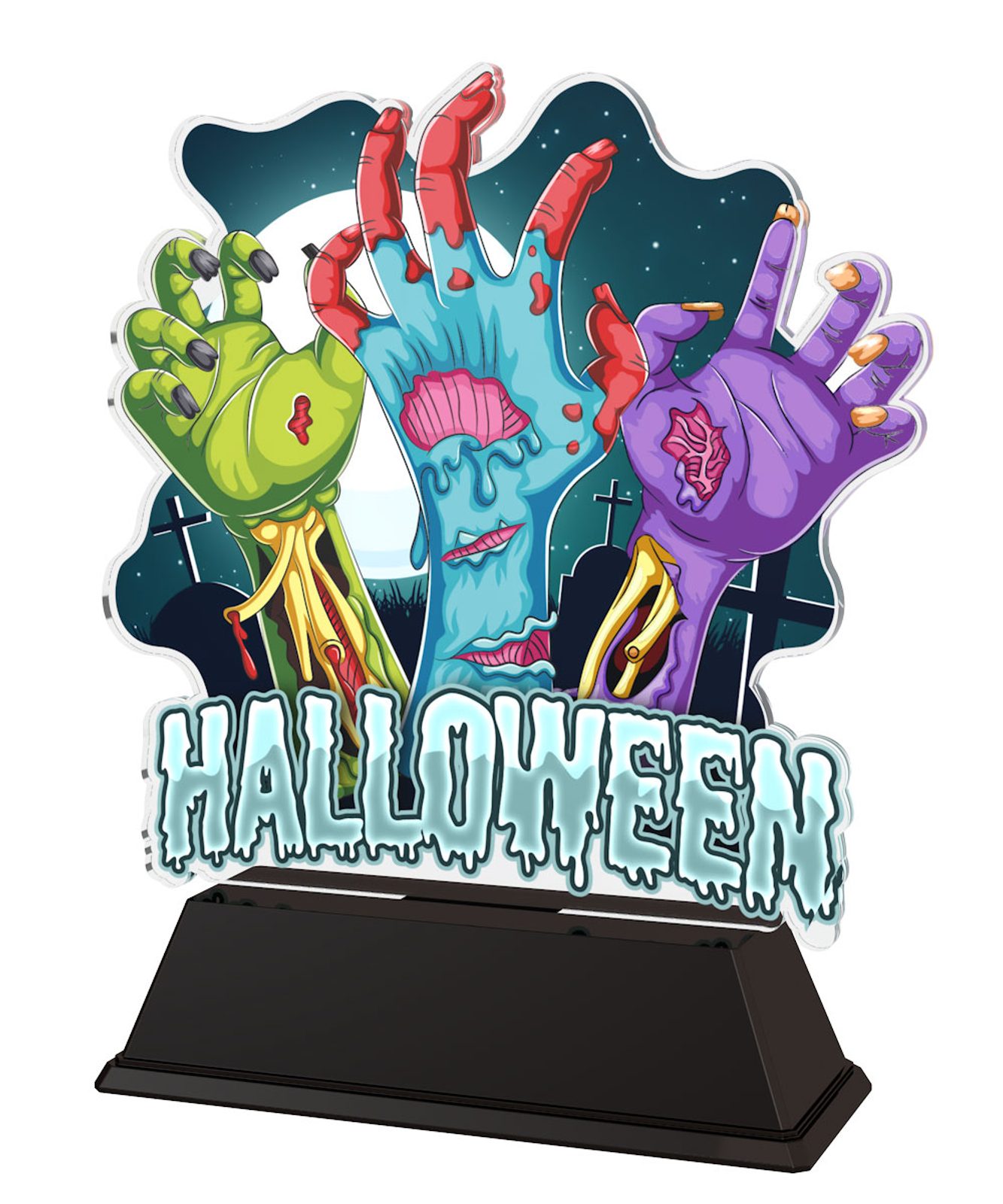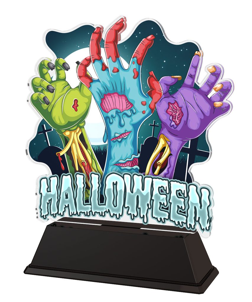 Halloween Spooky Trophy is a very scary award indeed. Cut to shape this trophy features a high quality full colour print on