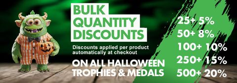 Make your Halloween event truly unforgettable with our exclusive Halloween trophies. With free engraving, free logo inserts, and an ever-evolving range of spooky and spectacular designs, these trophies are a real treat (no tricks!). Click 'Add to Cart' now and crown your creepy champions in style!