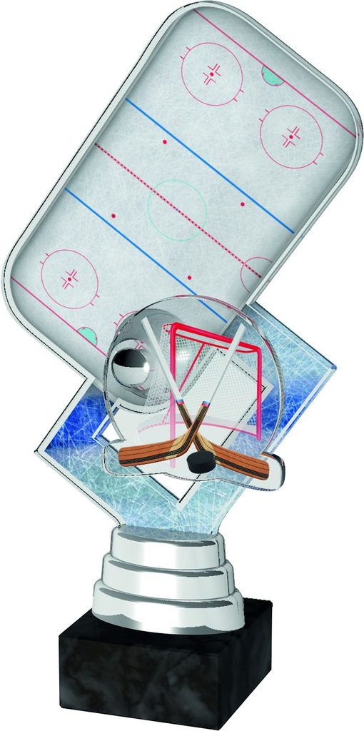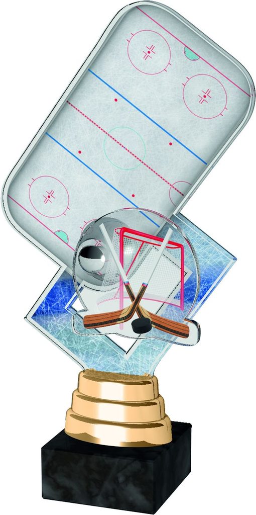 The Hanover Ice Hockey Rink Trophy is part of a new and exciting range of awards. Cut to shape this trophy comes to life with a high quality full colour reverse print on the 6mm thick acrylic. The equipment is a separate piece that is screwed on the front which makes this item truly unique. Just above the base sits a riser. Please select which colour riser you would like from gold, silver or bronze.