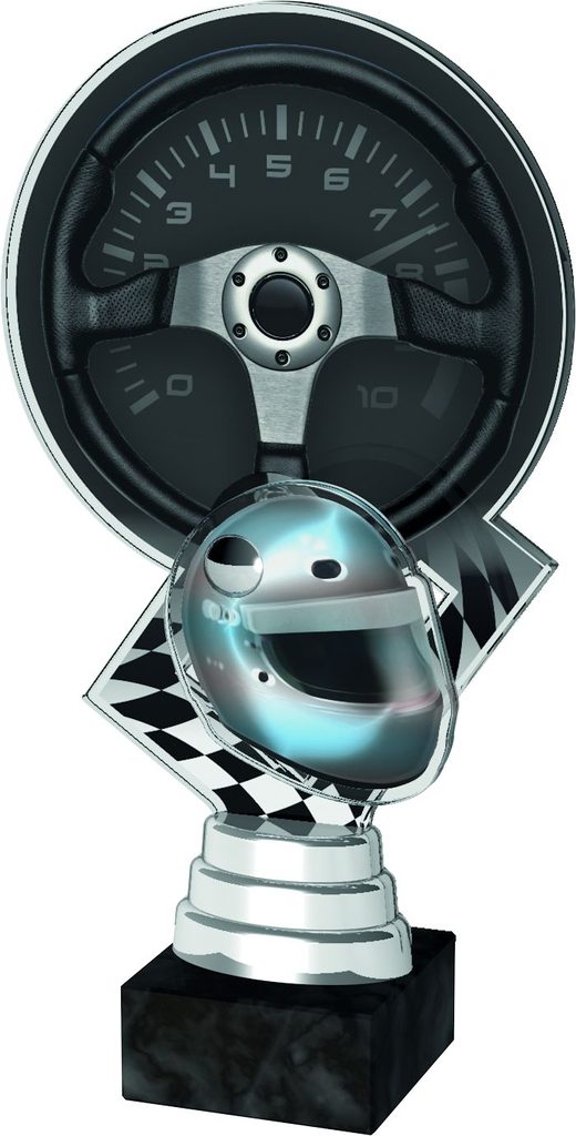 The Hanover Motorsport Trophy is part of a new and exciting range of awards. Cut to shape this trophy comes to life with a high quality full colour reverse print on the 6mm thick acrylic. The helmet is a separate piece that is screwed on the front which makes this item truly unique. Just above the base sits a riser. Please select which colour riser you would like from gold, silver or bronze.