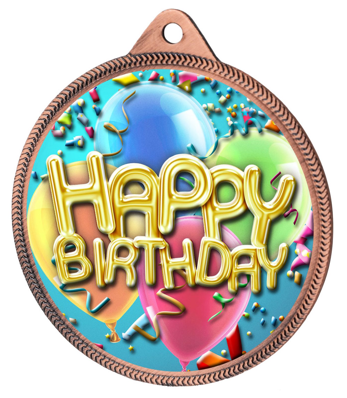 Happy Birthday Colour Texture 3D Print Bronze Medal