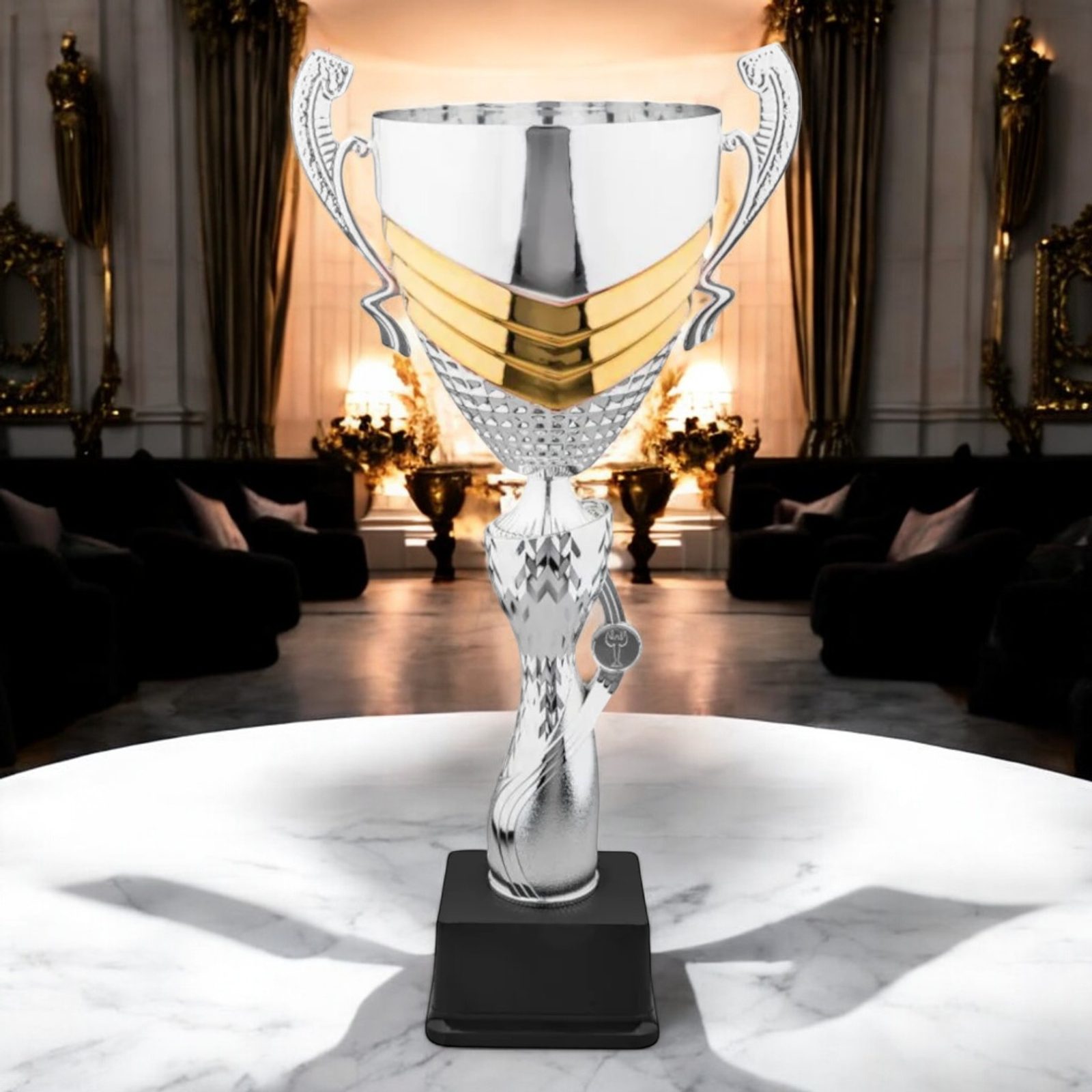 - Premium Craftsmanship: Features a metal cup and ornate handles with a striking silver and gold finish for a bold and elegant appearance.