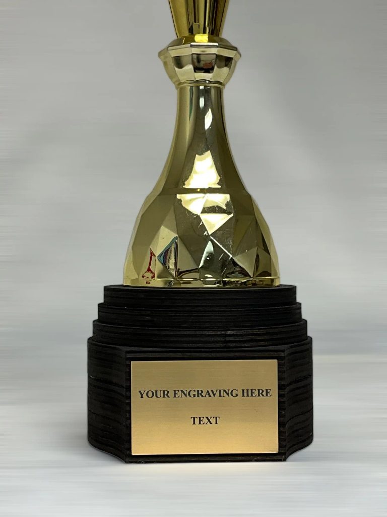 The Havana Gold & Blue Blade Trophy is a bold contemporary award that combines striking colour contrast with a modern sculptural design. Finished in gold with vibrant blue detailing and mounted on a natural wood base, it’s an eye-catching choice for standout presentations.