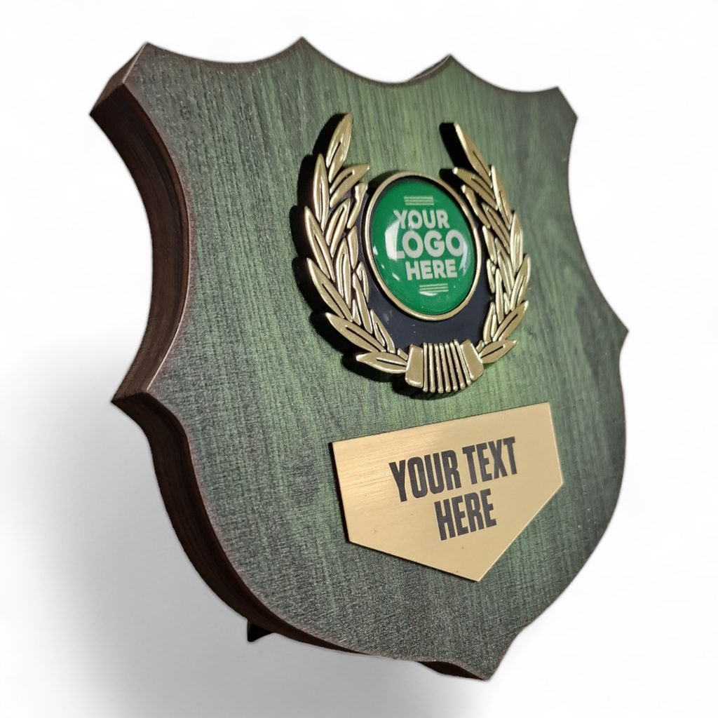 A bold and prestigious award, the Heraldic Green Birchwood Logo Insert Shield is perfect for recognising outstanding accomplishments.