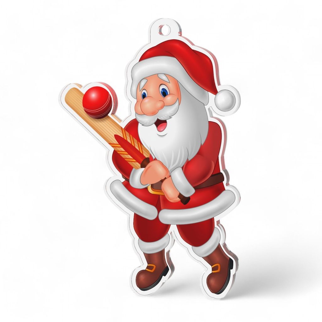 The Jolly Santa Cricket Medal is a fun festive award made from 3mm acrylic, featuring Santa batting in a winter cricket scene. Available in 60mm, 70mm and 80mm sizes, with optional ribbon and reverse text customisation.