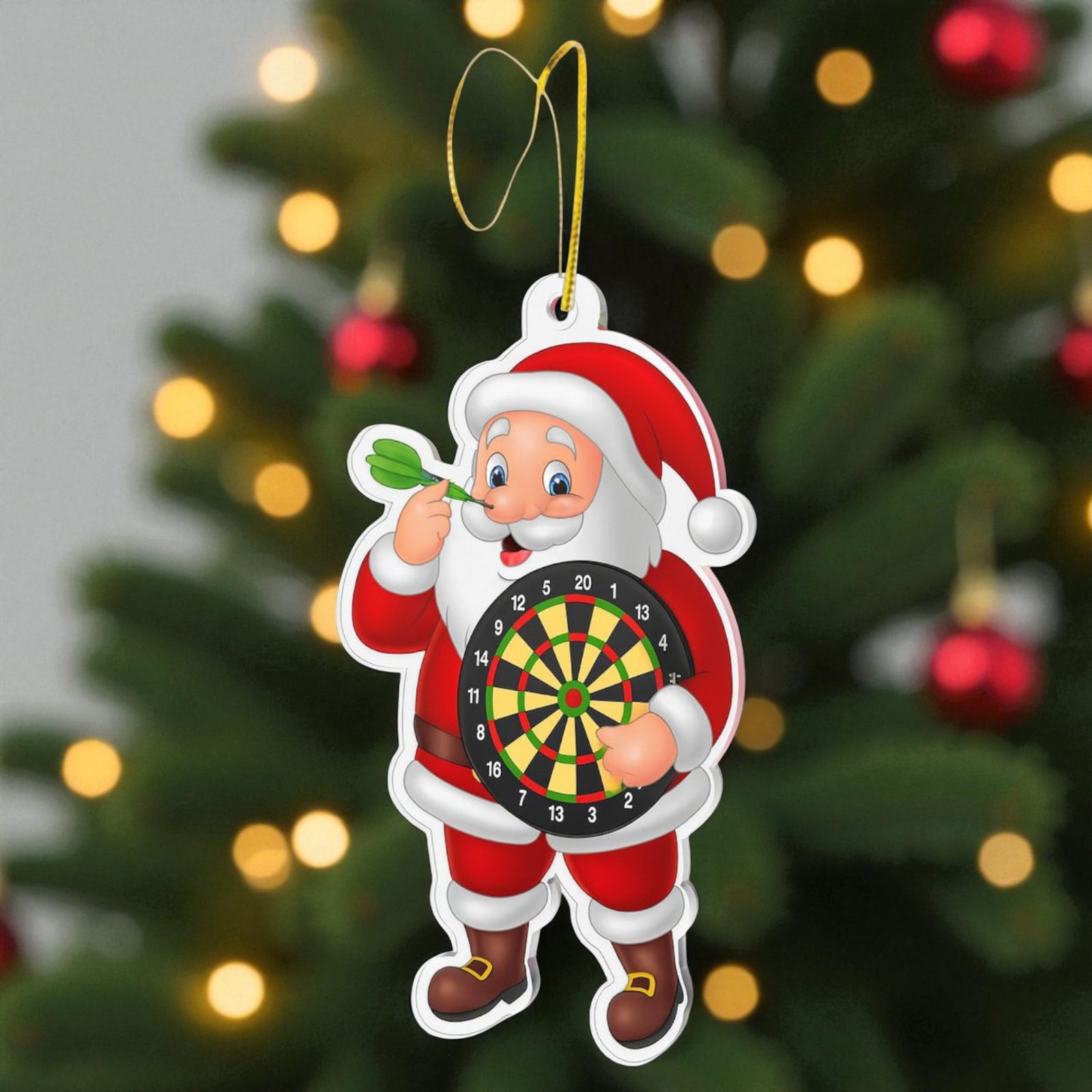 The Santa Darts Christmas Bauble is a festive 70mm decoration made from 3mm acrylic, printed in vivid full colour on both sides. Featuring Santa throwing a dart at the dartboard, it’s perfect for darts teams, pub leagues, Christmas competitions and stocking fillers. Comes complete with a gold hanging cord, ready to hang.