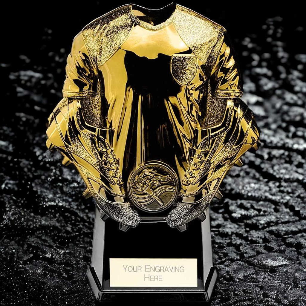 Introducing the new Krol Heavyweight Football Trophy, a stunning fusion of gold and carbon black. This award features a non-scratch hard shell, making it the perfect choice for this season's presentations.