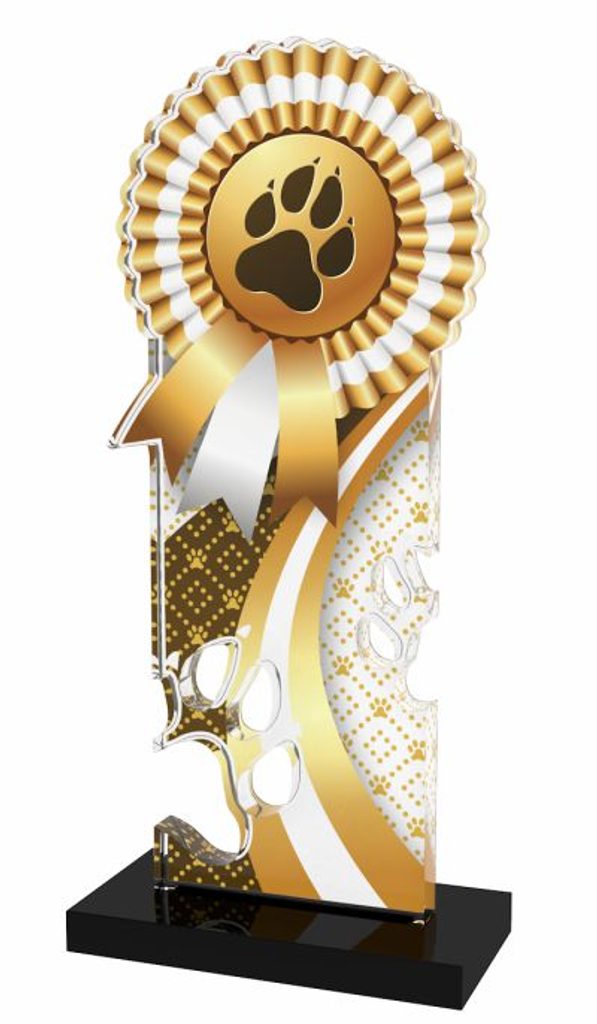 The Lassie Gold Paw-Print Rosette Trophy is the ultimate award for celebrating excellence in dog shows and competitions.