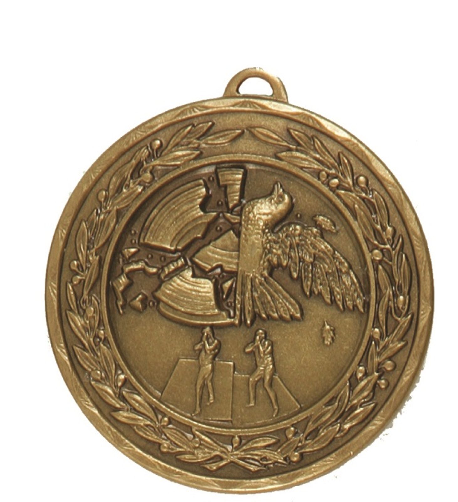A high quality embossed bronze metal clay pigeon shooting medal displaying a shot clay pigeon and riflemen within a laurel design. The diameter is 50mm and the thickness is 3mm giving the medal a heavy feel. This medal can be engraved on the reverse and comes complete with a loop to accomadate a ribbon.