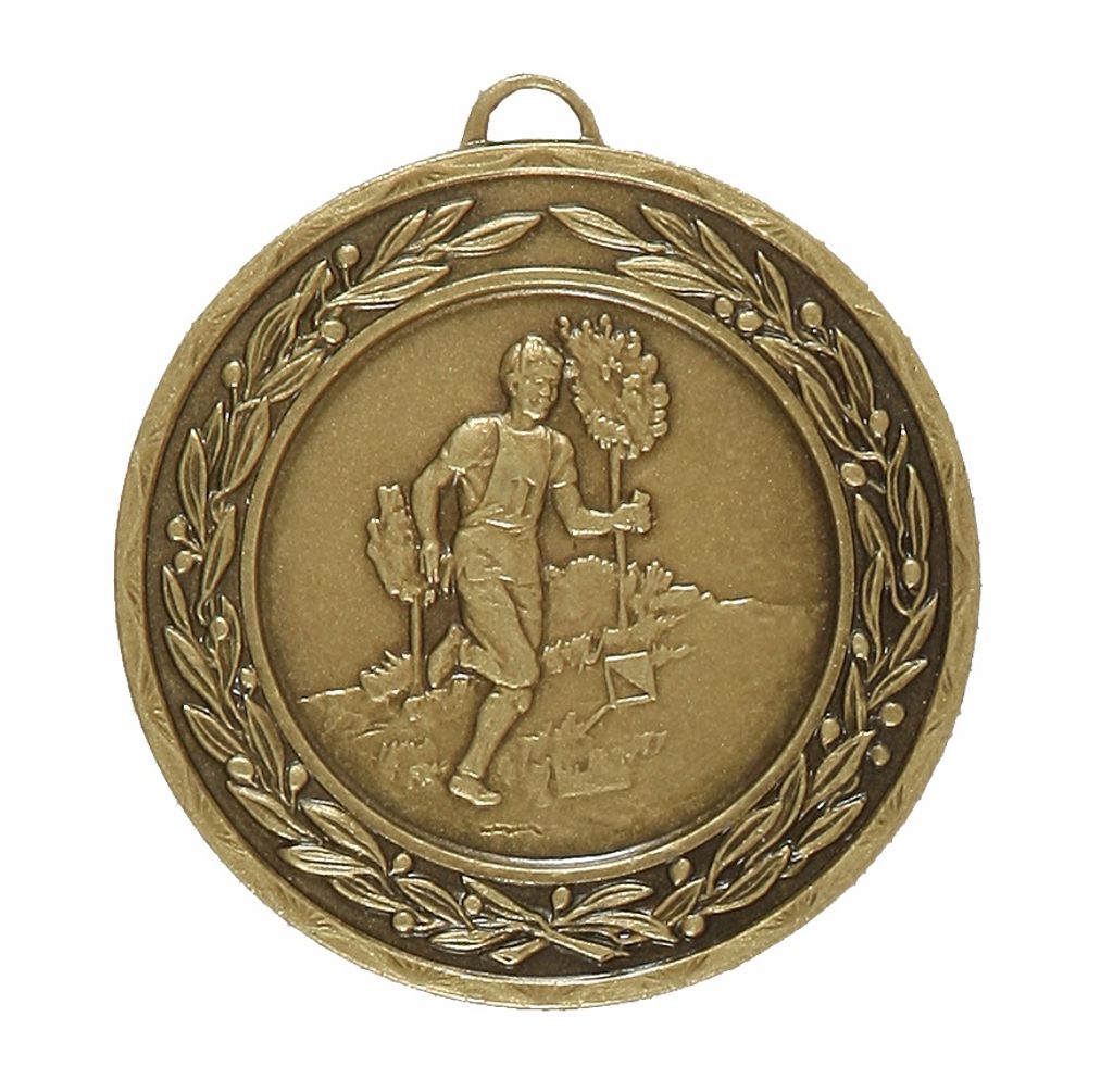A high quality embossed bronze metal mens athletics running medal displaying a runner within a laurel design. The diameter is 50mm and the thickness is 3mm giving the medal a heavy feel. This medal can be engraved on the reverse and comes complete with a loop to accommodate a ribbon.