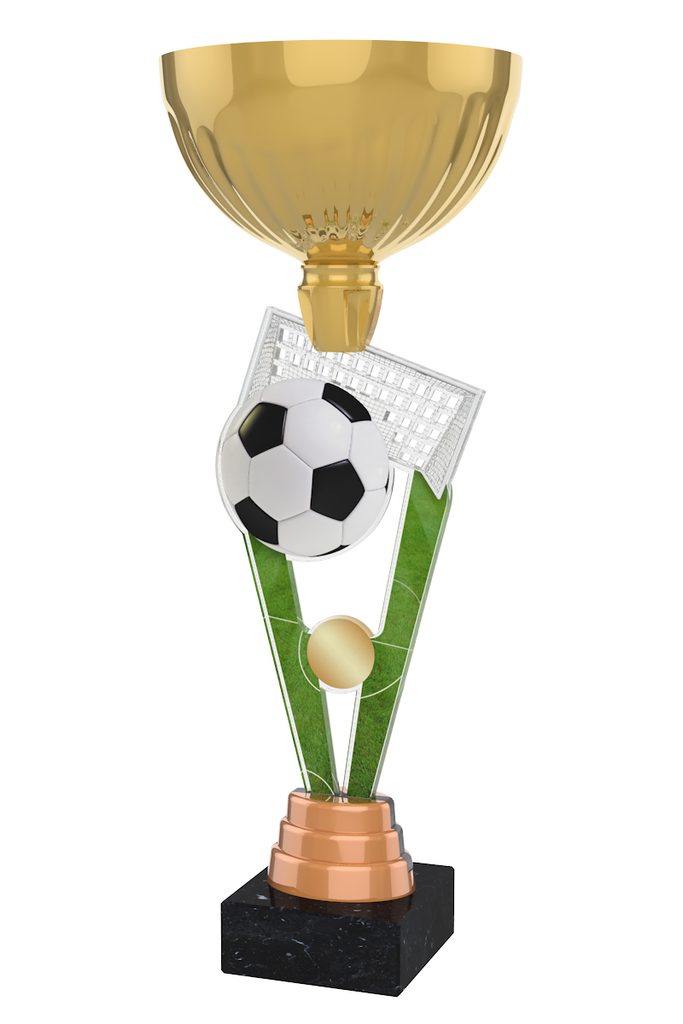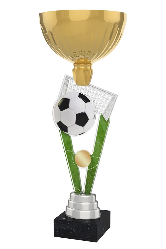The London Football Cup Trophy has a centrepiece featuring a double sided full colour print on 6mm thick acrylic. Fixed to a metal bowl, the cup is then mounted onto a black marble base. Please select which colour riser you like from gold, silver or bronze. The riser sits just above the base.