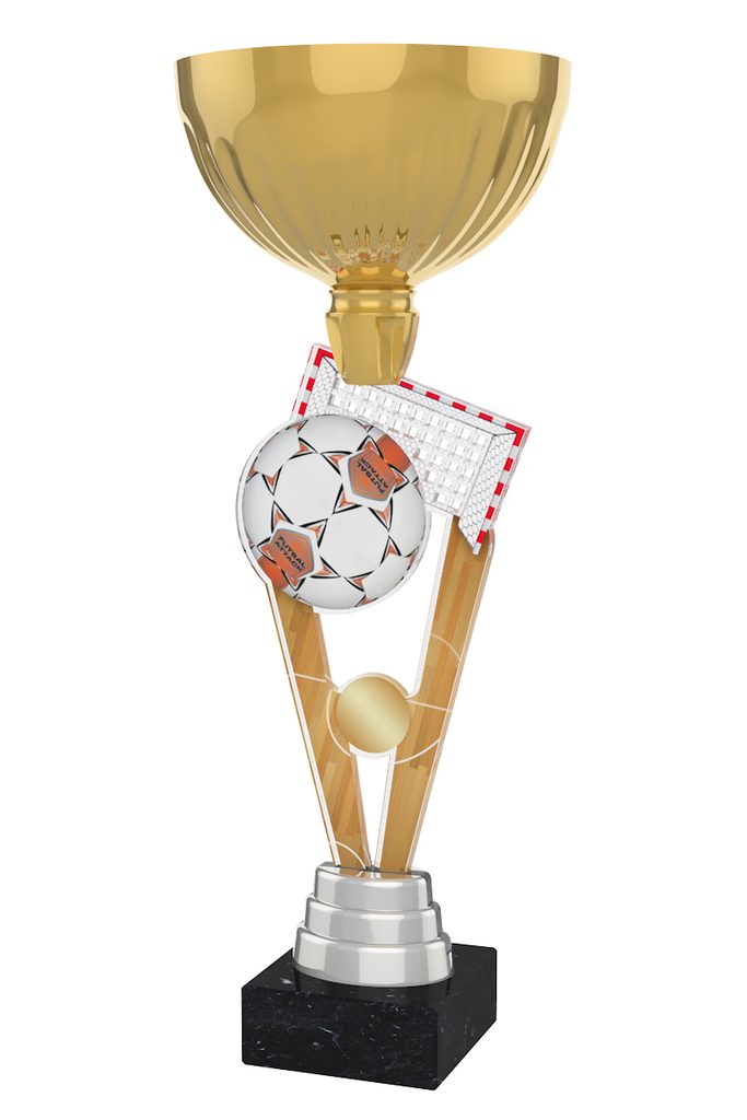 The London Futsal Indoor Football Cup Trophy has a centrepiece featuring a double sided full colour print on 6mm thick acrylic. Fixed to a metal bowl, the cup is then mounted onto a black marble base. Please select which colour riser you like from gold, silver or bronze. The riser sits just above the base.