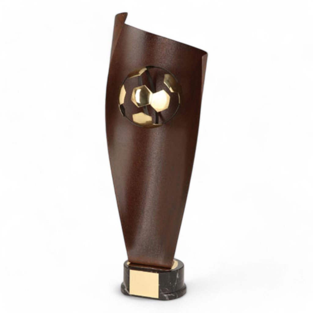 Each piece in this exclusive collection is meticulously handmade in Barcelona, Spain. Crafted from high-quality metals such as brass, copper, nickel, pewter, and steel, these trophies are available on either wooden or marble bases, offering both style and durability.