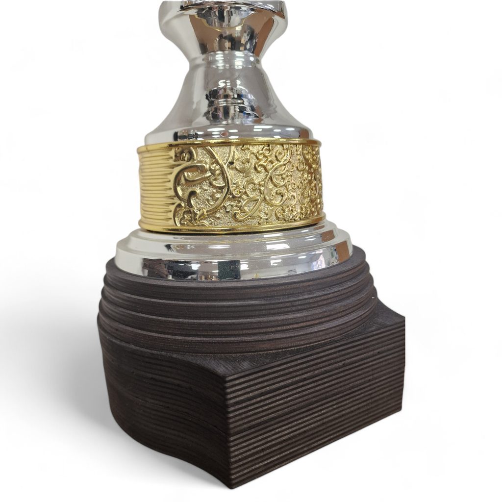 The Mayfair Silver Cup is an elegant and meaningful trophy, designed exclusively by Trophy Monster. Featuring a polished metal bowl with distinctive feather-shaped handles, this refined cup is mounted on a sleek metal stem and finished on a large handcrafted real birch wood base, making it ideal for both prestigious and commemorative awards.
