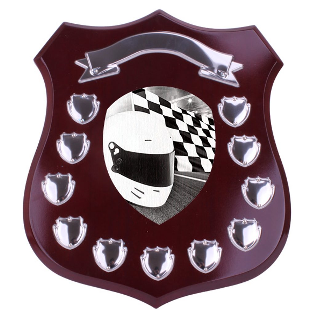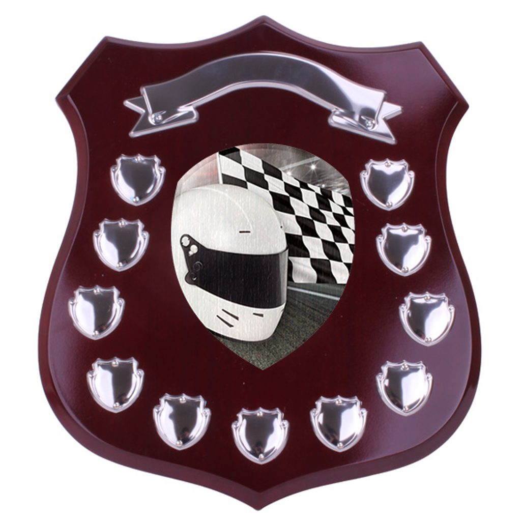 Looking for something new for your next award show? The Mercia Motorsports Mahogany Wooden 11 Year Annual Shield is the perfect award for your next annual presentation.
