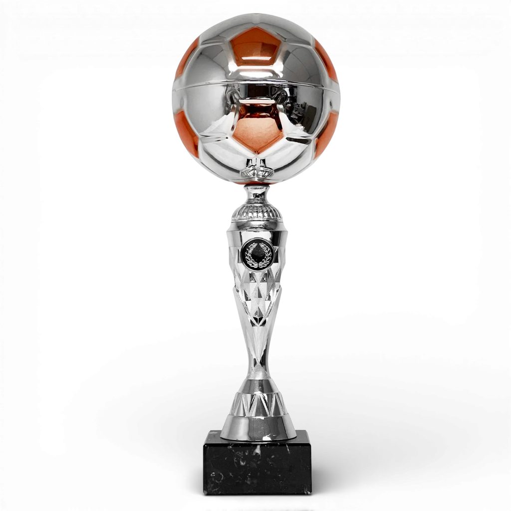Metal football topper – reflective silver finish with orange panel detail