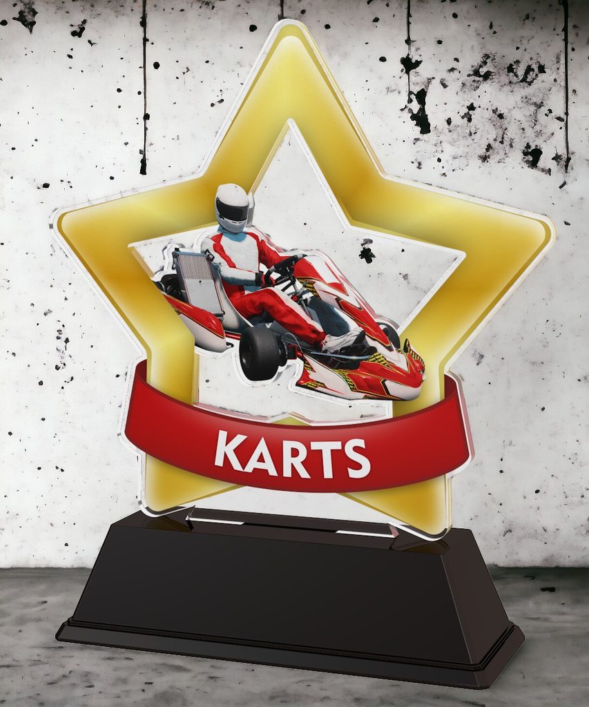 The Mini Star Go Kart Trophy is a fun and engaging award, perfect for recognising young achievers and standout performers.