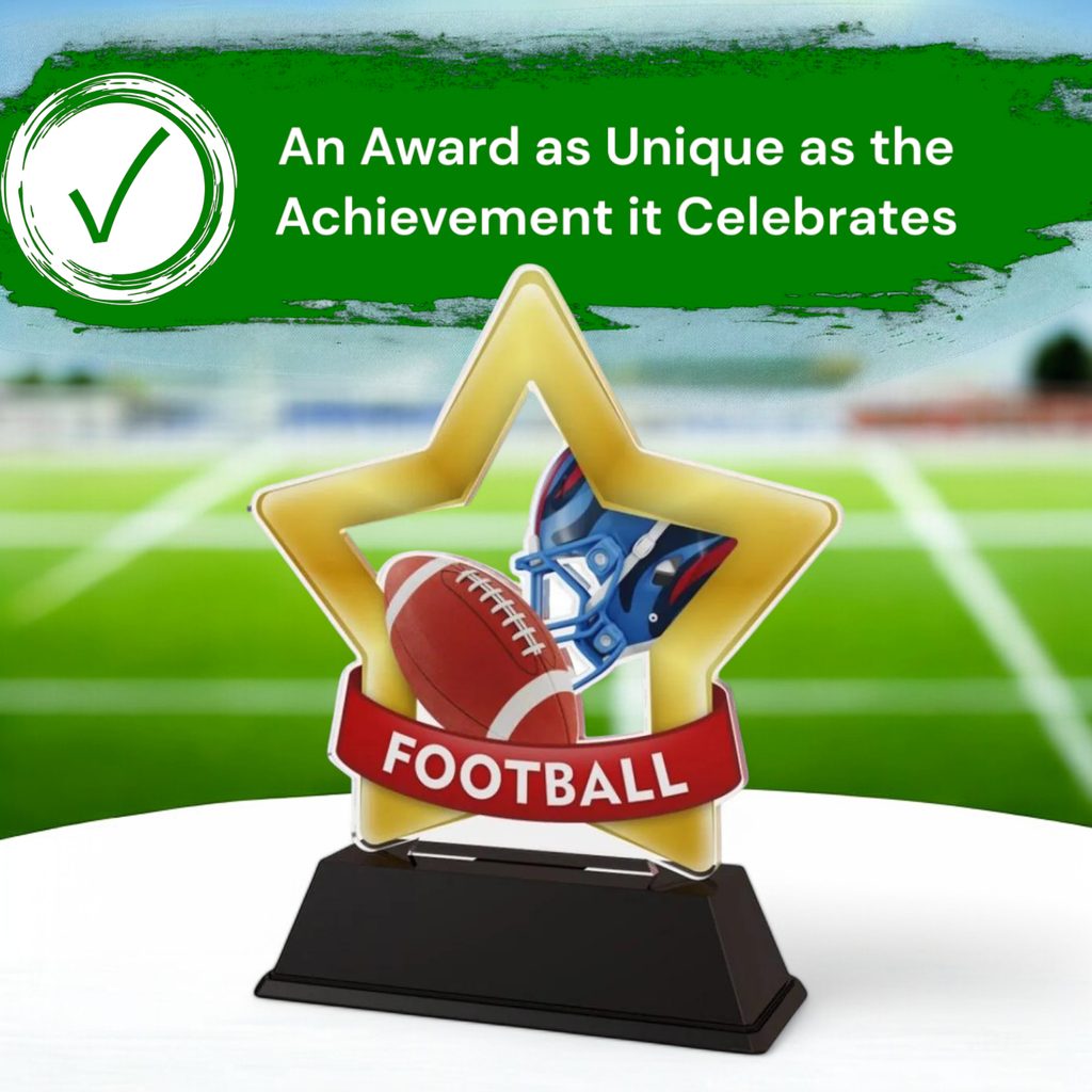 The Mini Star Mini American Football Trophy is a fun and engaging award, perfect for recognising young achievers and standout performers.