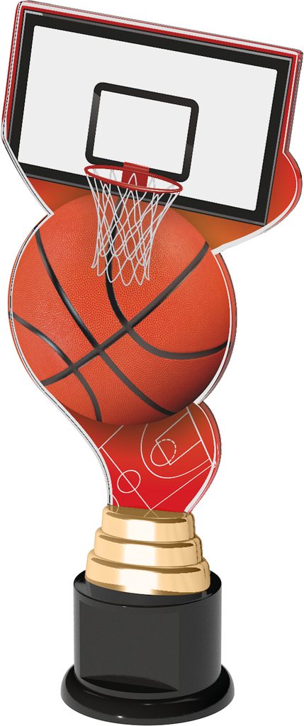 The Monaco Basketball Trophy is a tall modern style award. Cut to shape this trophy features a high quality full colour print on