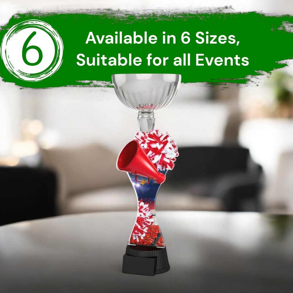 The Montreal Cheerleading Silver Cup Trophy is a prestigious award that adds grandeur to any event.