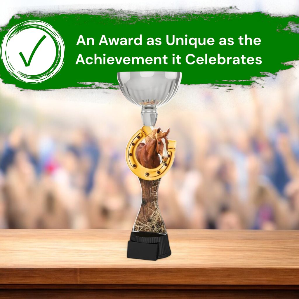 The Montreal Horse and Horseshoe Silver Cup Trophy is a prestigious award that adds grandeur to any event.